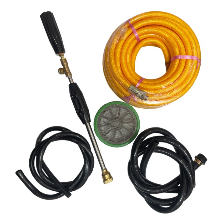 لازم به ذکر است درون پک اصلی این دستگاه علاوه بر شلنگ مکش و برگشت، یک عدد لانس فشار بالا به همراه ۱۰ متر شلنگ فشار بالا قرار دار که مصرف کننده می تواند بسته به نیاز خود، طول شلنگ را تا ۵۰ متر افزایش دهد.